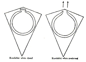 Sri Ramchandraji Maharaj, the great master, says that the Kundalini is not like a coiled serpent at Mooladhara but instead is like an open ring, the two ends of which are but slightly apart from each other. They face each others as two poles for the passage of energy. Thus it is more a closed circuit of power based in the Mooladhara. For this reason the action of the Kundalini force remains within itself without affecting any part of the human system. But when awakened its ends get a little more apart and turn slightly upwards. The energy then flowing out from the ends does not remain located within the Kundalini but goes up through the medium of the sushumna nadi covering a larger circuit extending from the base up to the centre of the Sahasrara. In cases where premature awakening of the Kundalini is effected by physical means, the power acquired is commonly utilised for material purposes only. In this respect, the awakening of the Kundalini may be taken as an exclusively material pursuit and may amount to degradation of Yoga. As a matter of fact Kundalini is the seat of sensations which come under control by its awakening. The divine wisdom dawns with it and Nature becomes an open book. Though the super-normal capacity acquired thereby is meant for Nature's work which a yogi at higher stages of advancement cannot avoid, it is by no means the final object of the pursuit or real criterion of a yogi or even an essential factor in determining the spiritual elevation of a sadhaka. It is to be noted seriously that a physically forced awakening of Kundalini leads to grossest evil. Master warns that greatest precaution is necessary in this respect and its premature awakening must not be resorted to under any circumstances.