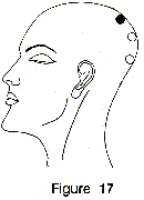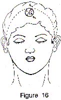 The tranquillity and peace which was almost perfect in knot 8 has been losing its intensity gradually and now it has come to the stage where even memory of it is lost. The region to which knots 11 and 12 belong is actually the divine realm. This is the region of mind about which Master writes in Efficacy of Rajayoga. The super consciousness of this region is only hinted at by the Master and no description of it is given. This is obviously due to the fact the sadhaka has nothing to do with this super consciousness. The Master states that the essence of the region of heart lies here. In this region only idea of the calmness or peace remains or the forgetful state of calmness is dominating here. This of course is not the end. Here the sadhaka does not feel any colour or form. This is a stage where all the senses have no relevance. We have earlier seen that there is a relationship between senses and the elements: that Akasa is related to sound (sabda), air (Vayu) is related to sound (sabda) and touch (sparsa), fire (Agni) is related to sound, air and form (roopa), water (jala) is related to sound, air, form and taste (rasa), and earth (bhoomi) is related to sound, air, form, taste and smell (gandha). All these elements were having their sway when the journey to the Infinite was started in the First knot. Now the sadhaka has reached a stage where none of these have any say. However, the faint sounds that emanated from the original stir is felt as reverberating. It may be felt sometimes as a faint recollection of the OM Kara. This knot is immediately below the crown of the head in the rear side(Fig 17). This is the place where the tuft of the traditional Hindu is found. As a matter of fact in certain sub-sects of south Indian Brahmins the whole area of the sikhara is covered with a particular type of tuft called 'appala kudimi'. This is the sacred Godly realm. No colour of any type is experienced. Vastness is experienced and the sadhaka feels helpless at the sight of this vastness of nothing. This is the realm of manifestation at the initial stages. Master puts it as "There is motion. Invisible motions, when multiplying together with the idea of creation, increase the force downwards. The outcome is the innumerable varieties we find in the Universe. It is beyond the ethereal force. Air does not blow there. This is the most powerful region of God. For your understanding you may call it the Power House for setting the Godly machinery a going. It is very difficult to explain this idea which can only be felt. People may doubt how calmness can abide when motion is there, imperceptible though it be. I would say there is calmness in refined form, and it is imperceptible, just as the idea about creation is expressed as imperceptible." XII Knot