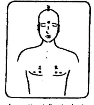Note: Measurement is to be made with one's own fingers. Meditation on point 'A': Fix your attention on the point and think that